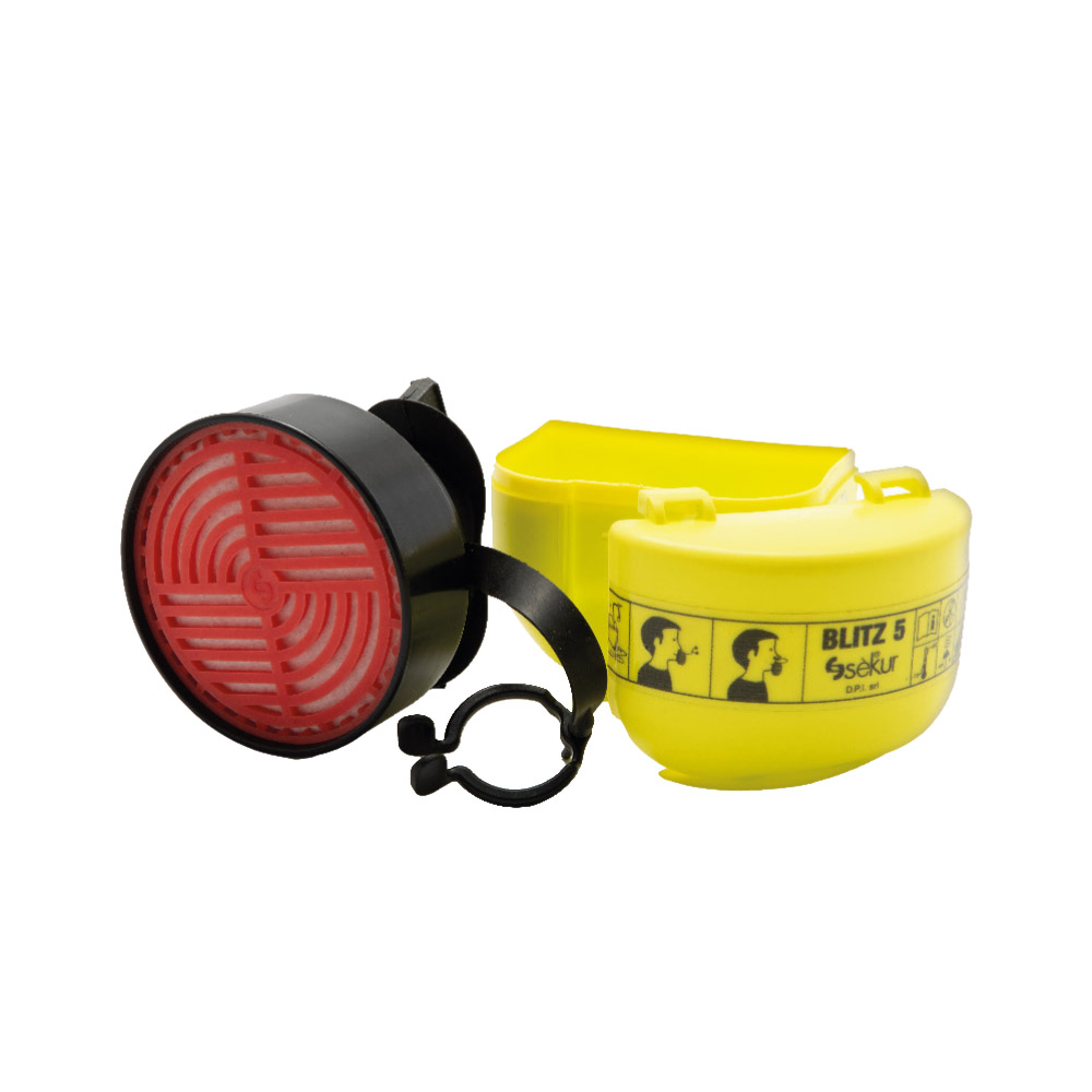 DPI Sekur POLIBLITZ® ABEK 5 Ağızlıklı-Burun Klipsli Kaçış Maskesi